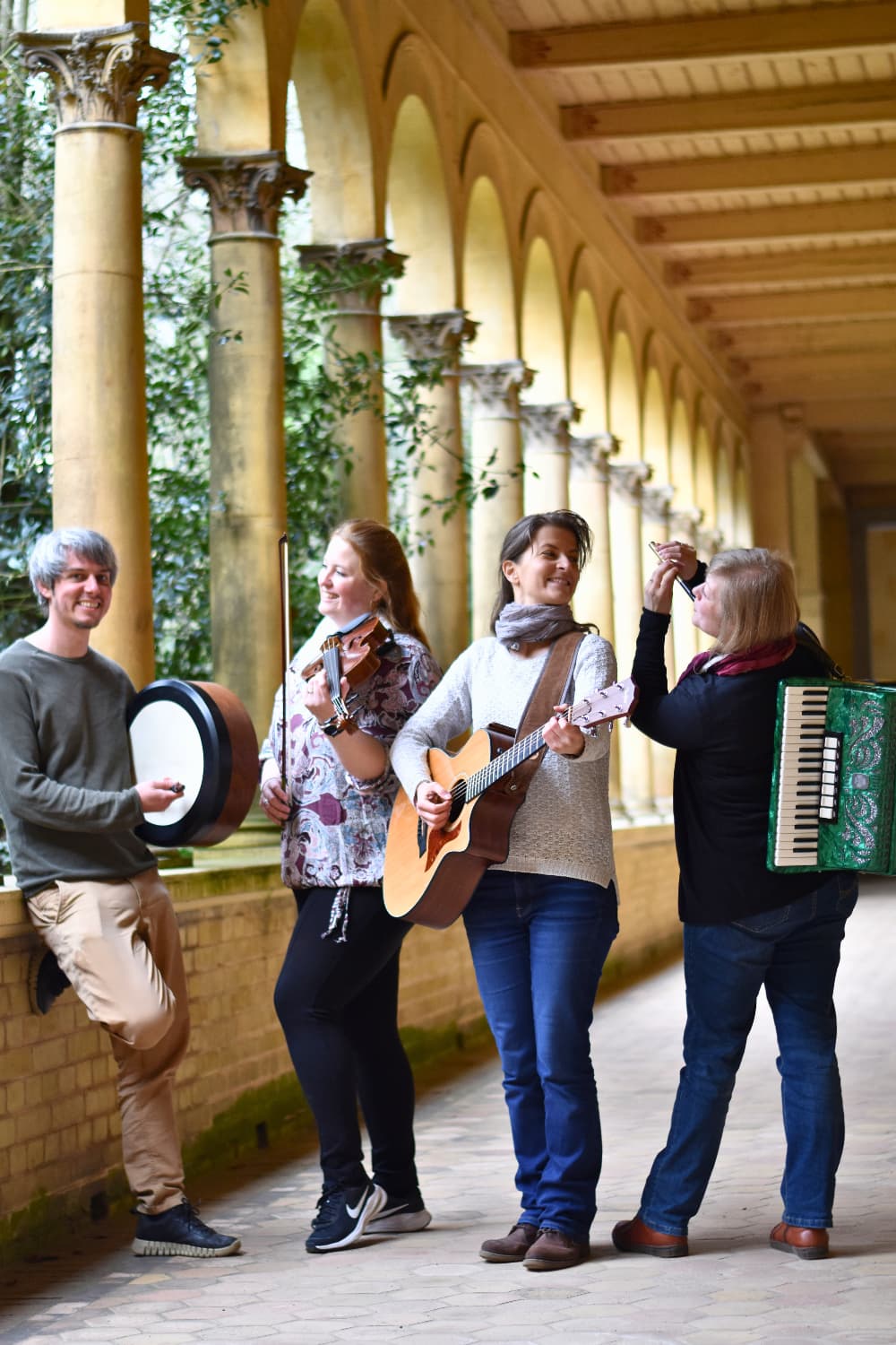 Begleitet werden sie von Klavier, Akkordeon und Gitarre. Auch Besucher haben schon Instrumente mitgebracht.