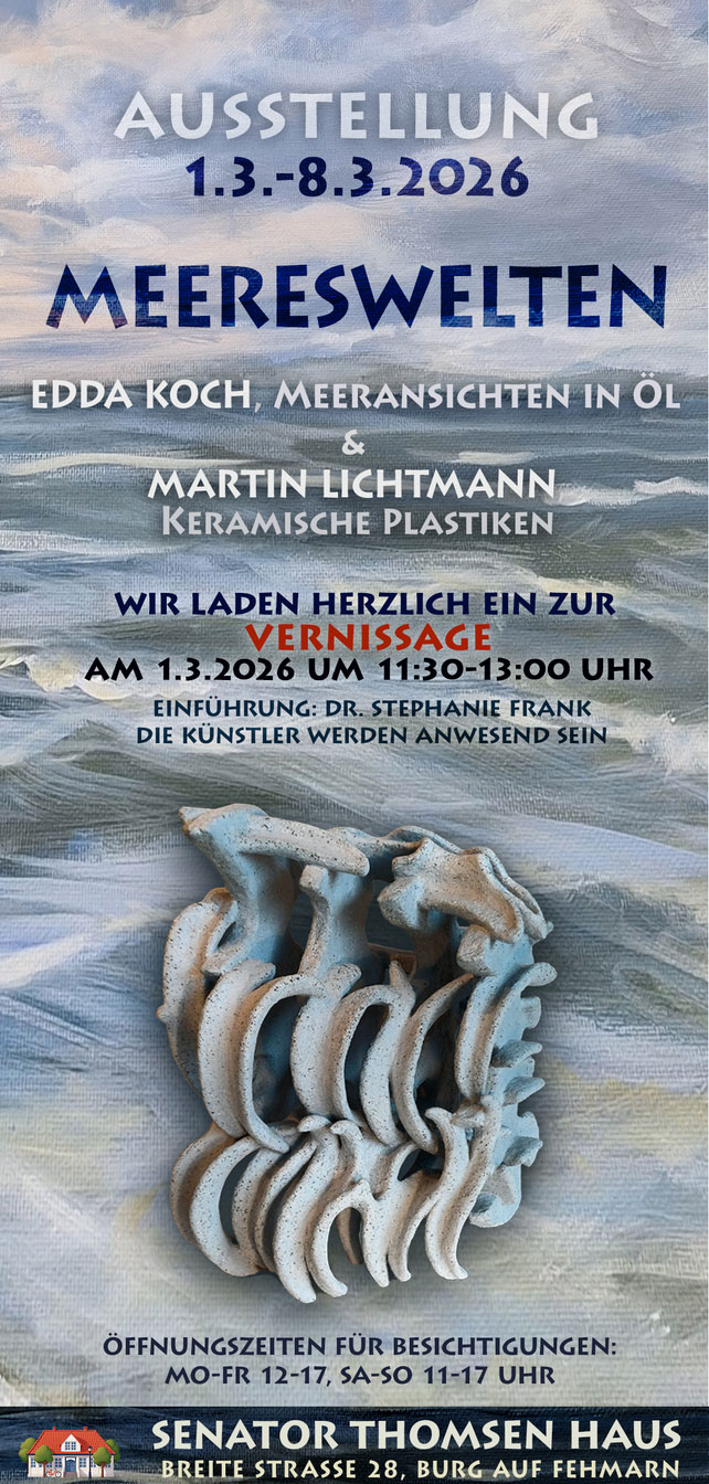 Martin Lichtmann thematisiert in seinen abstrakten keramischen Objekten symbolische Phänomene aus der Lebenswelt im Norden und zwischen den Meeren. Seine Arbeiten greifen Assoziationen an Küstenräume, maritime Fundstücke und natürliche Transformationsprozesse auf.
