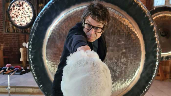 Im Zentrum des Konzerts steht ein 1,90 Meter großer Paiste-Gong, ein Instrument von gewaltiger Präsenz und seltener klanglicher Tiefe. Seine sich langsam entfaltenden Schwingungen durchdringen den Raum wie ein atmendes Klangfeld – mal als fernes Donnergrollen, mal als irisierende Lichtgestalt. Dieses außergewöhnliche Instrument zählt zu den größten seiner Art und macht jedes Konzert zu einem einzigartigen, nicht wiederholbaren Erlebnis, das weit über das rein Musikalische hinausgeht. Peter Heeren, der in seinen Konzerten physische Präsenz, spirituelle Tiefe und künstlerische Radikalität vereint, ist bekannt für seine eindrucksvollen Auftritte in Kirchen und bei experimentellen Festivals. Seine Musik kennt keine konventionellen Strukturen – sie entsteht als hörbare Bewegung von Raum und Zeit. Das Publikum ist eingeladen, sich nicht nur auf das Hören zu beschränken, sondern Klang als unmittelbare Erfahrung zuzulassen: als Energie, als Vibration, als inneres Erleben.