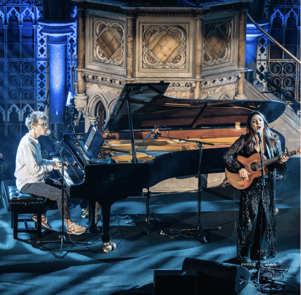 Begleitet werden sie von Klavier, Akkordeon und Gitarre. Auch Besucher haben schon Instrumente mitgebracht.