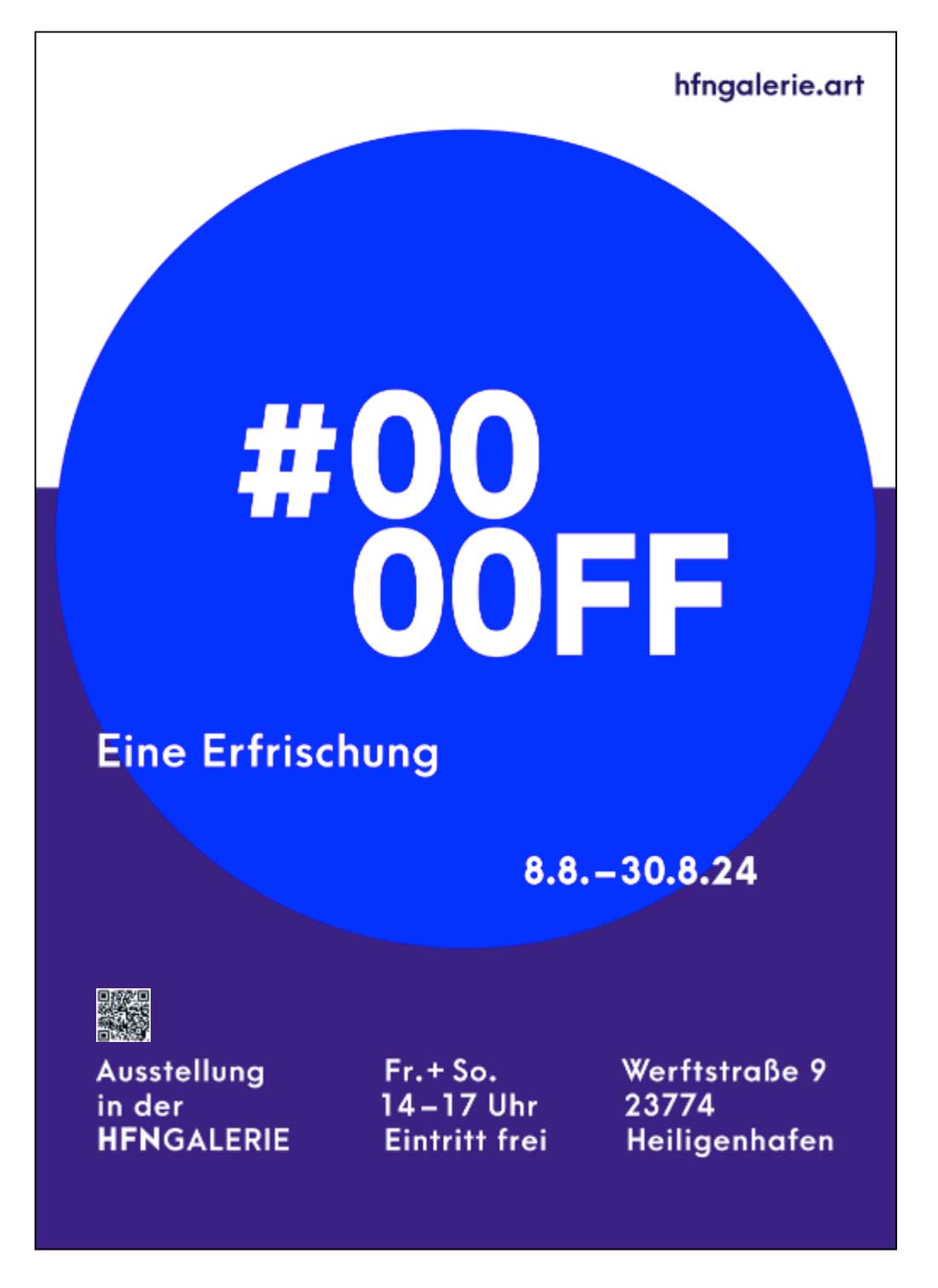 HFNGalerie 0000FF 20240808 webIn der HFNGALERIE startet ab 8.8.2024 mit #0000FF eine Ausstellungserfrischung, die das Sommergemüt abkühlt.