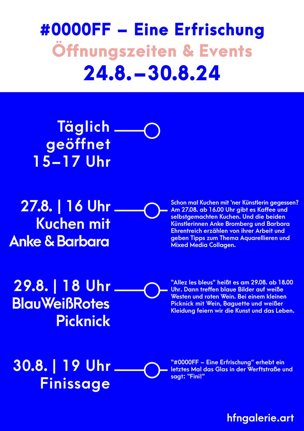 Mehr Infos #0000FF Ausstellung in der HFNGALERIE in Heiligenhafen ab 8. August 2024