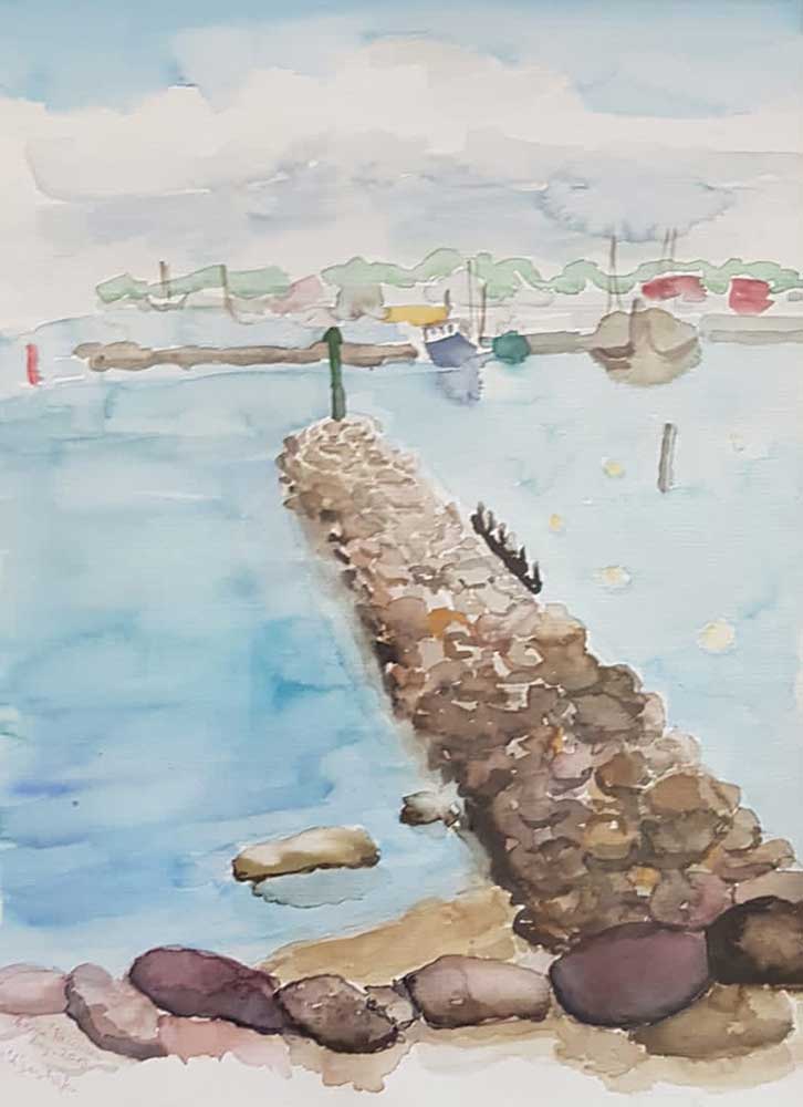 In den Kursen von Patricia Holubeck lernte sie seit 2015 weitere grundlegende Techniken und konnte dadurch einen eigenen Stil entwickeln. Stimmungen werden gerne in kräftigen Farben ausgedrückt, den Stilrichtungen August Mackes und Emil Noldes folgend. Mit der pleinair-Gruppe Heiligenhafen ergeben sich zahllose künstlerische Inspirationen, um das geliebte Meer und die schleswig-holsteinischen Besonderheiten im Aquarell einzufangen.